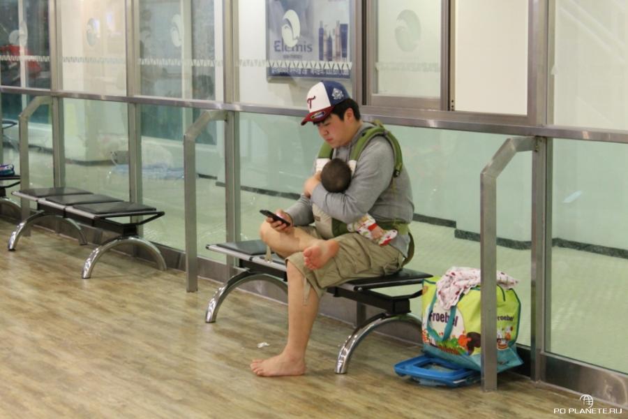Я специально сделал этот снимок отца с ребенком. В Корее просто тенденция какая-то: с детьми гуляют именно папы. Наверное потому что мамы в это время зависают в салонах красоты. И не зря - корейские женщины от 18 до 38 выглядят как ровесницы.