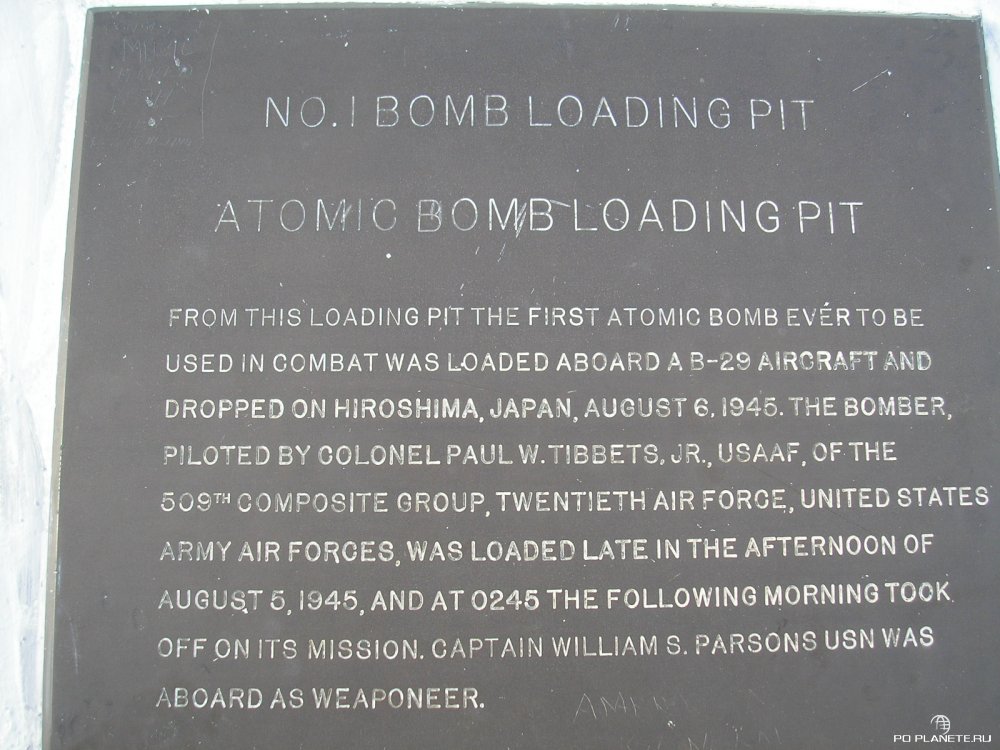 Тиниан знаменит тем, что именно отсюда в августе 1945 года взлетали бомбардировщики Б-29, сбросившие атомные бомбы на Хиросиму и Нагасаки.