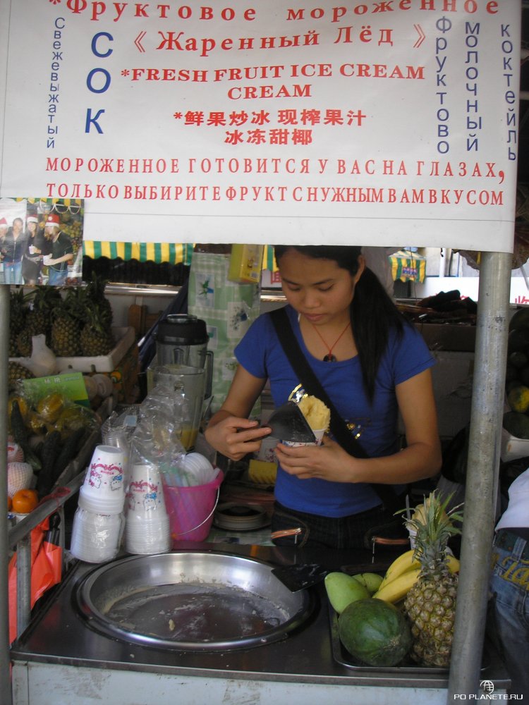 В баре народу миллион! Русские, китайцы. Причем русские в основном девчонки, а китайцы – парни. Сели за столик, осмотрелись, заказали бутылку водки «Один дома» (15 юаней) и фруктовое ассорти (45 юаней) и покатило….
