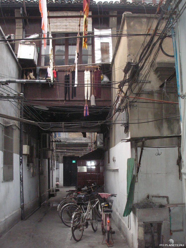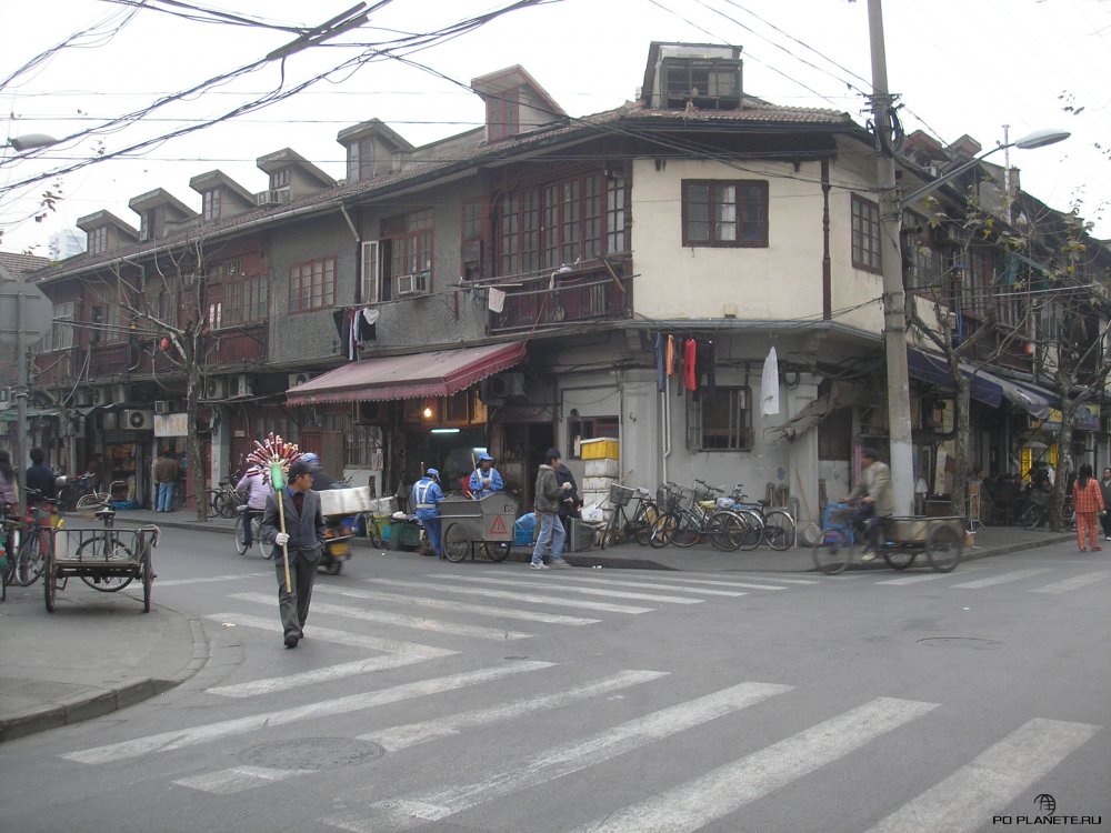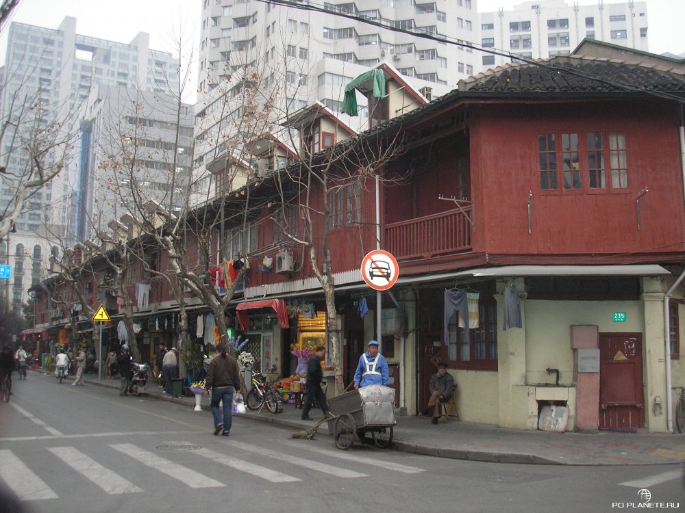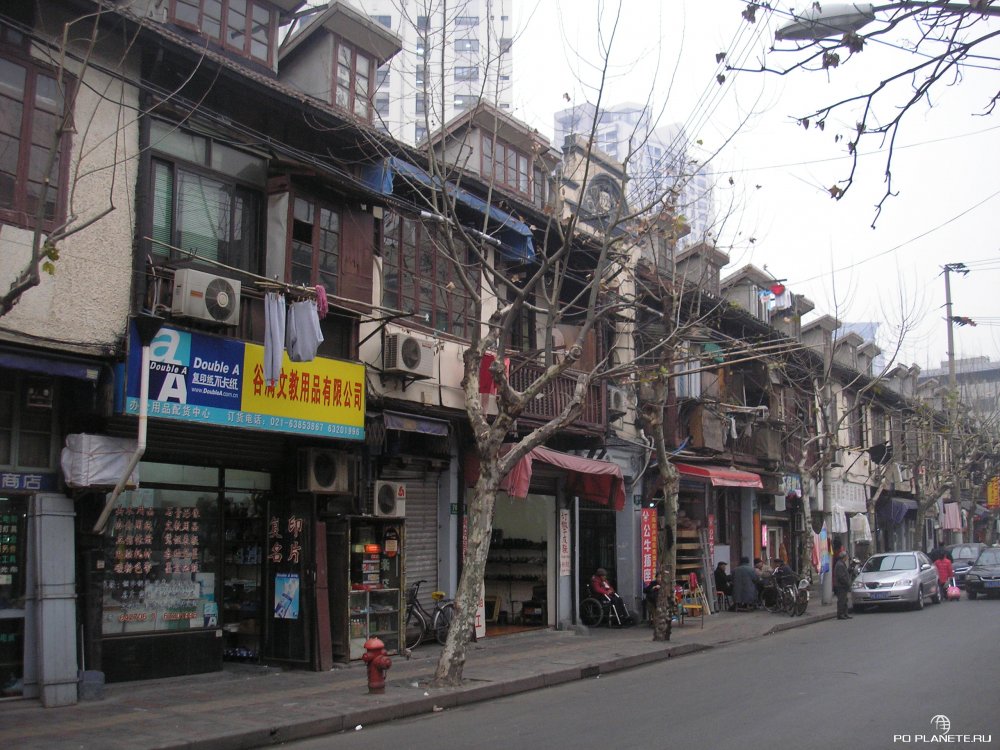 Погуляли по дворикам, пофотографировались. А потом пешочком дошли до Times Square. Не, не нью-йоркской, а местной шанхайской. Среди стоящих небоскребов небольшая такая площадь, на которой торгуют всякой всячиной. Тут же парк, где шанхайские пенсионеры занимаются своей любимой гимнастикой цигун. Куда завернули и оказались в старом квартале. Похоже, это и есть французский квартал.
