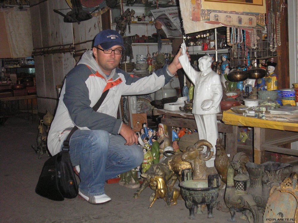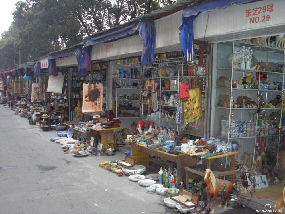 Кстати, улица это называется Chongde Road. От нее вправо уходит другая улица – Dongtai Road. Она известна как улица антиквариата. Чего тут только нет! От мелких сувениров до мебели. Много вещей и сувениров с Мао Цзэдуном. Я тоже прикупил себе на память тарелку с изображением Мао. Продавщица назвала стартовую цену 150 юаней, я предложил 10. После торговли купил тарелку за…10 юаней.