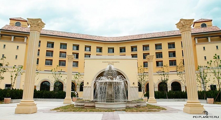 От него до пляжа Сокчо – рукой подать. Будет более точным назвать это место отдыха группой отелей, ибо здесь несколько зданий, соединенных между собой переходами. Поэтому туристы, хоть и находятся в одном месте, но имеют возможность выбрать себе качество услуг: 5, 4, 3 и даже 2 звезды. Зато аквапарк, панорамный кинотеатр и три ресторана может посещать любой, независимо от звездности номера в отеле. В фойе вечером играют классическую музыку.