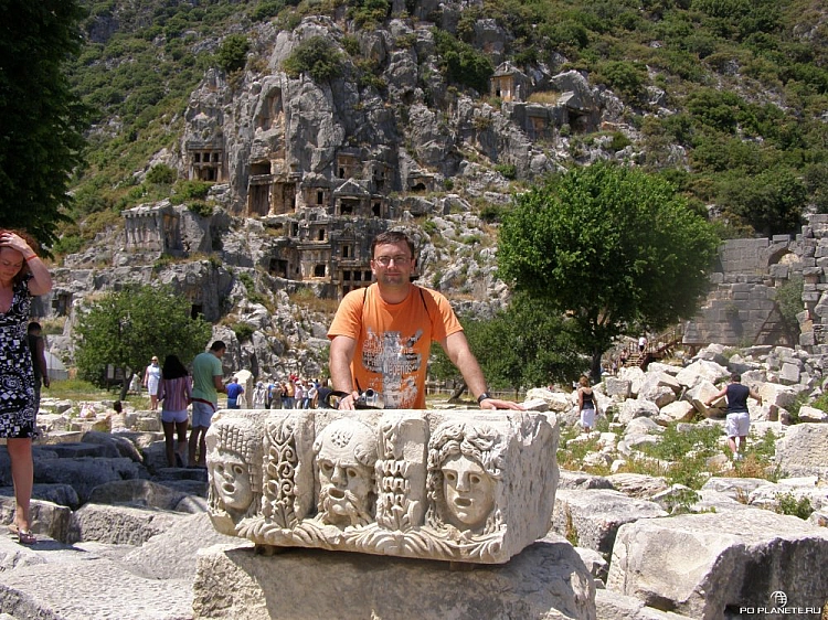 Как в Иераполисе, здесь устраивают фестивали и театральные представления. Но больше всего меня в Мире потрясли знаменитые ликийские гробницы, которые вырублены прямо в скале. Фасады гробниц украшают величественные колонны с фронтонами. Гробницы украшены эпитафиями и рельефами с изображениями воинов, погребальных сцен и обнаженных фигур.