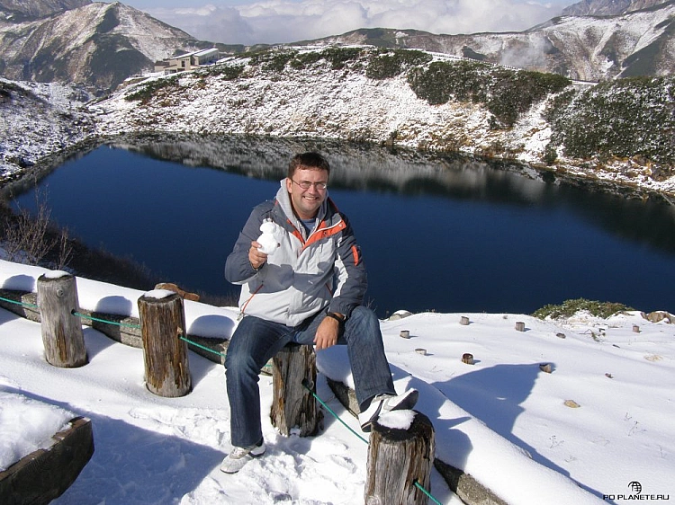 Особенно впечатляюще смотрится на фоне заснеженных гор темно-синяя гладь высокогорного озера-кратера Микурига. Вокруг полно туристов, в основном японские бабушки и дедушки. Японцы вообще считают Татэяму священной горой и стремятся побывать здесь хоть раз в жизни. Летом приезжает много школьников, которые ходят в походы по проложенным по склону горы маршрутам. Немало бывает и иностранных туристов – в основном с Тайваня, Кореи, Китая. А самый массовый наплыв приходится на апрель-май, когда туристы едут посмотреть на настоящее чудо света – снежный коридор «Юки-но-Отани» или как его называют еще – «Великая снежная стена». Зрелище и вправду впечатляющее. В многометровой толще снега пробита дорога. Иногда высота снежных стен достигает 20 метров.
