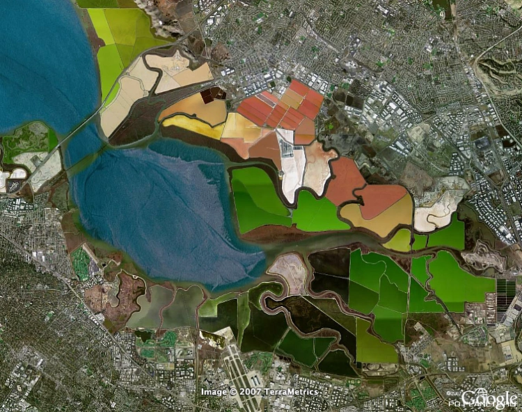 В Сан-Франциско есть залив. Так и называется SF Bay. Если смотреть на залив сверху, он разноцветный. Почему?